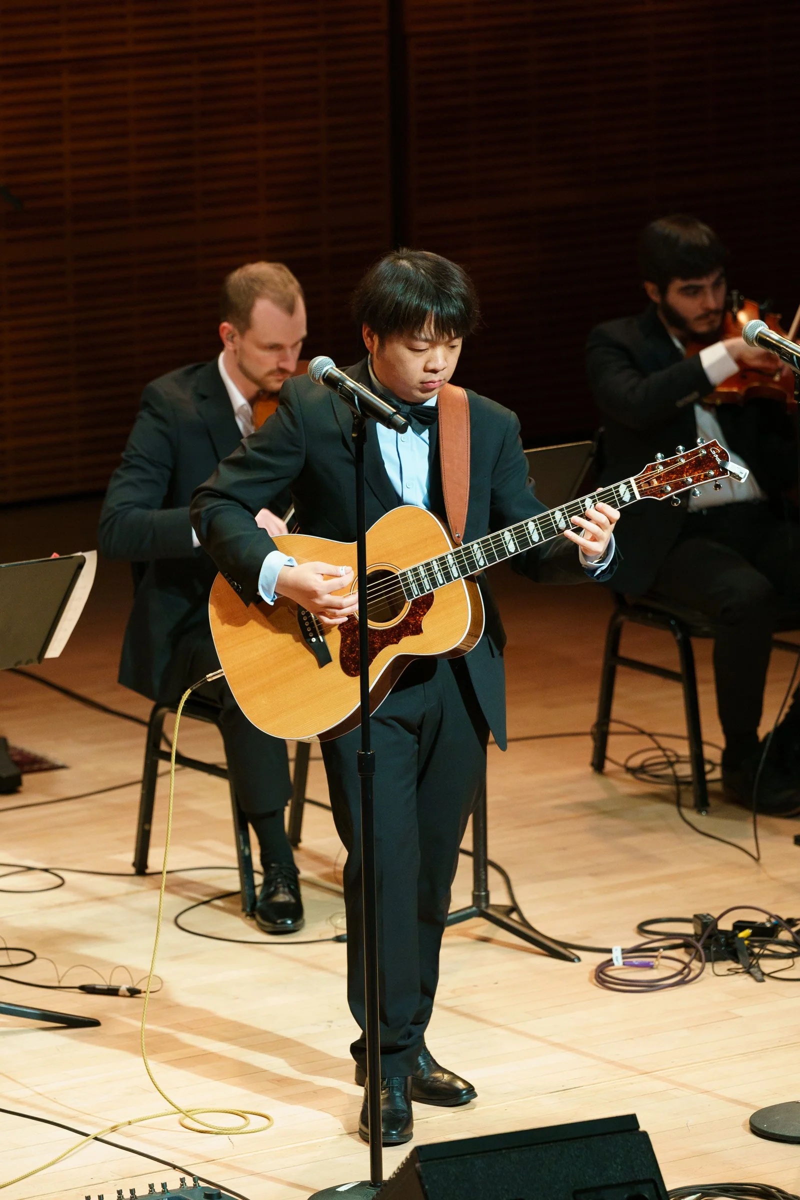 As a former musician, getting to photograph a concert rehearsal at Carnegie Hall was a super exciting experience. Acoustic fingerstyle guitarist Jason Ji performed at Zankel Hall alongside fingerstyle bassist Charles Berthoud, Austrian electric guitarist Bernth, and Lucas Richard Tchen, a crossover classical guitarist. Accompanied by a string quartet, they presented a program that merged fingerstyle, classical, metal, and folk influences. They were also joined by special guest Stephen Bennet, winner of the International Fingerstyle Guitar Championship.